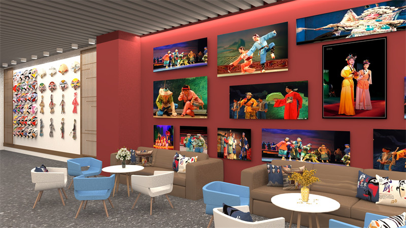 门头设计:打破传统非遗展厅中规中矩、有棱有角的直线设计,采用柔和的弧形曲线重塑空间的律动感。曲线的门头设计,艺术感满满,也展现了DPI独特的设计审美。内部空间:空间布局是展厅设计的核心之一。开放式的空间布局,可以自由穿梭体验,沉浸式拍照打开更出片。展厅内部有宽敞的售卖区、展示区、展示廊和沙发等等;合理的动线设计可以让参观者更加流畅地参观整个展厅,同时也增加了参观者的参与度。通过空间布局让每个小空间来展示晋剧文化展览,展示廊的设计以白色元素为主,墙上是由晋剧的迷你小人物和山丘式灯带构成,像一座座小山丘,营造出一种浓厚的晋剧文化氛围。总的来说,非遗文化展厅设计概念要体现传统文化的传承与现代审美的结合,通过传统元素、空间布局、色彩搭配、灯光效果和空间氛围等方面的营造,为观众呈现一场具有深厚文化内涵的展览体验。