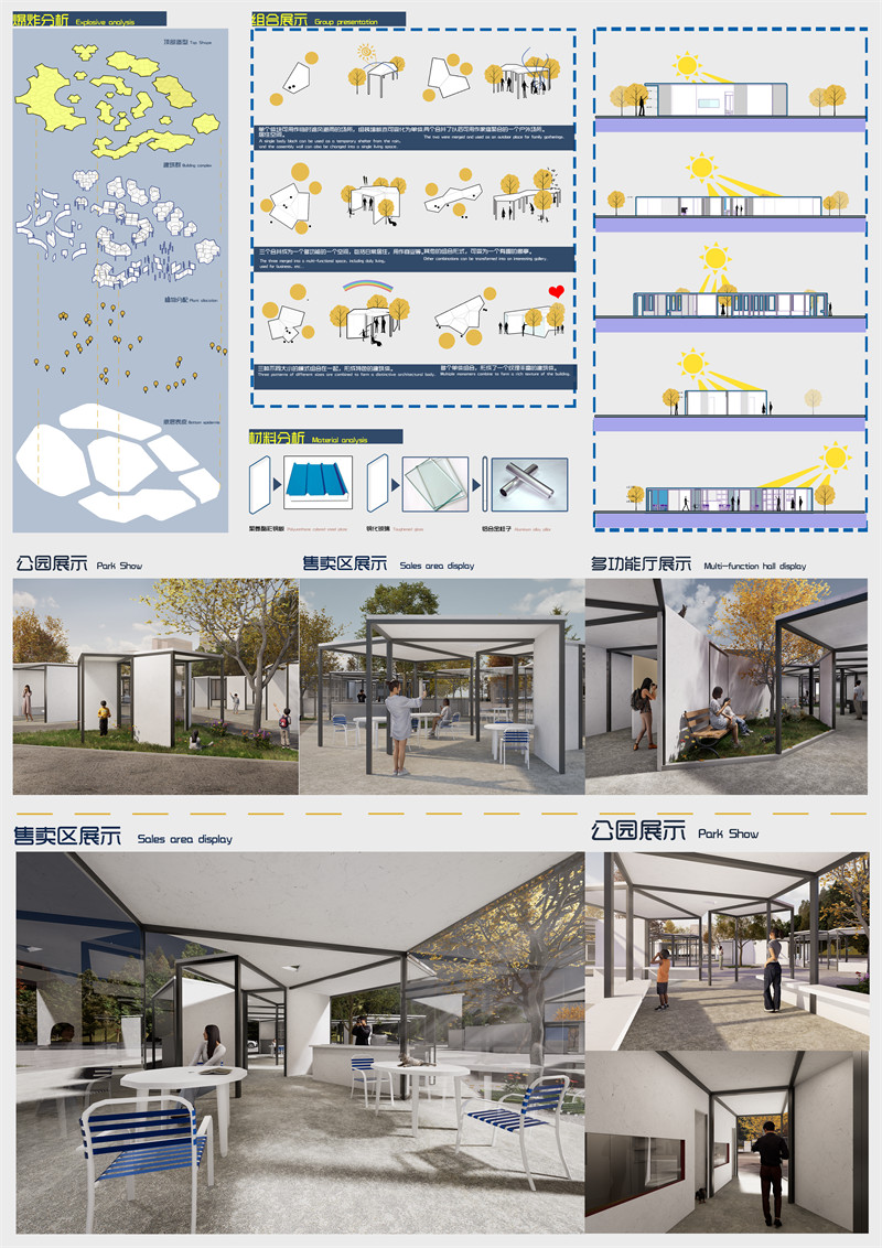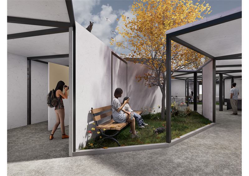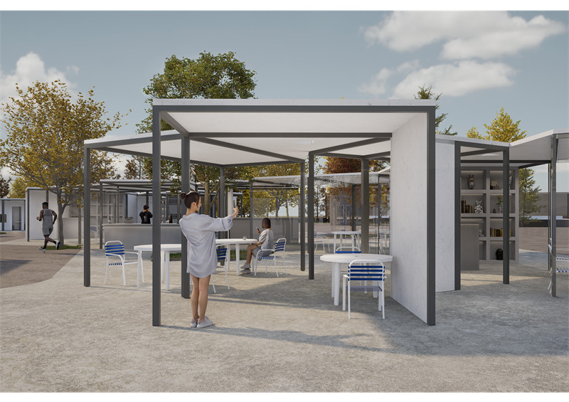 然而,为了使建筑在更广泛的时间维度内发挥价值,设计思路拓展至多功能利用。考虑到非返乡时段的资源利用,将建筑灵活转变为游客住宿场地,满足日益增长的旅游住宿需求,吸引更多游客驻足当地,深入体验当地风土人情;打造本地人悠闲娱乐场地,为当地居民提供休闲放松的公共空间,提升居民生活品质与社区凝聚力;设置特色产品销售场地,为当地特色产业开辟展示与销售的平台,促进地方经济发展。通过这一系列功能的整合与转换,使建筑从单一功能的临时庇护所演变为一个综合性的小型社区活力引擎,以公益性带动旅游、商业、社交等多元活力的迸发,实现社会效益与经济效益的双赢,重塑当地的活力与生机,构建起一个可持续发展、充满人文关怀与经济潜力的小型社区生态系统。