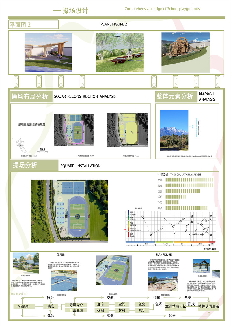 我期待通过本设计,满足人们对于体育运动的需求,使其成为学校新的集结点,为学校增添一个充满活力、绿意与人文情怀的休憩之地。