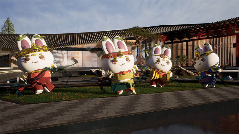 敦煌舞蹈中分为四个主要舞蹈,分别是:巾舞、胡旋舞、反弹琵琶以及腰鼓舞。设计中结合了这几种舞蹈姿态设计了相应的IP形象,使整个设计变得灵动活泼。