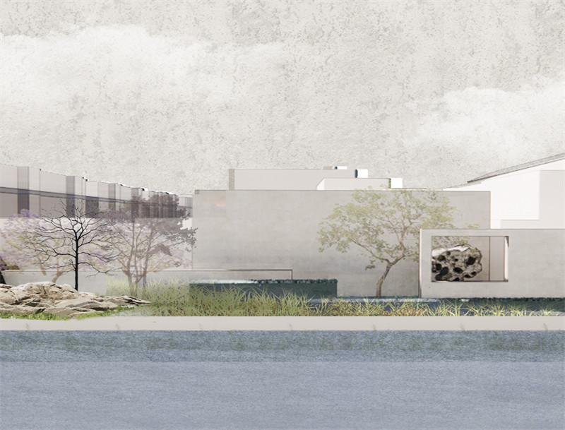 设计灵感汲取自沧浪亭的雅致与静谧,围合型廊道与廊外精巧园林景观相得益彰,既保留了古典园林的深邃意境,又赋予其现代空间的灵动与开放。漫步其间,仿佛穿越古今,体验一场跨越时空的文化对话。在保留苏州传统园林文化的同时,现代化的设计呈现出恰当的比例,实现了过去和现在院落生活的统一,观者在片刻的凝视或浮光掠影的一瞥之中,重新唤起苏州城的历史性记忆