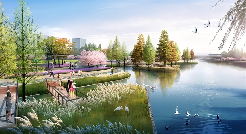 总之,滨水城市公园的设计理念是综合考虑生态、人文、社会等多方面因素,打造一个既具有自然生态美,又能满足人们休闲娱乐、文化传承等需求的公共空间,促进城市的可持续发展。