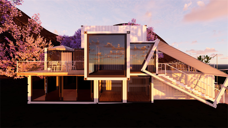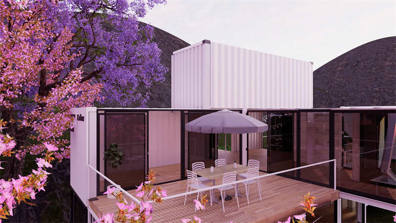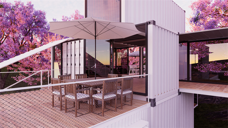 集装箱立面改造:在集装箱的侧面或顶部开设大窗户或玻璃门,增加自然光线的进入,同时提升空间的通透感。