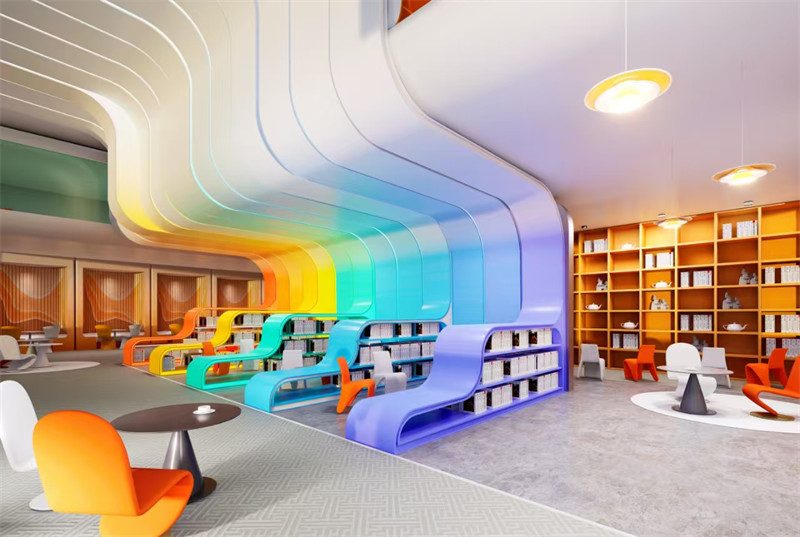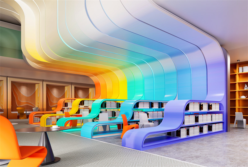 彩虹般的色彩运用:通过渐变和立体的色彩处理,使空间充满活力,营造出梦幻般的氛围。