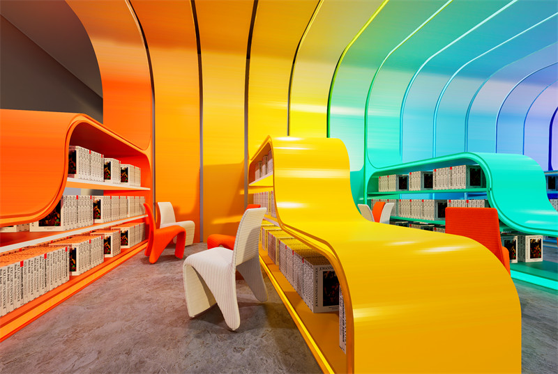 通过彩虹般的线条和形态,营造出梦幻般的空间氛围,增强视觉冲击力。