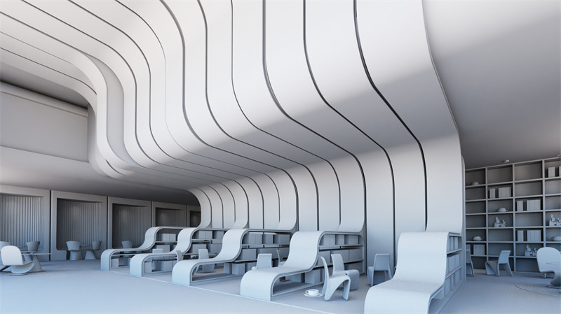 流畅的弧线形态:利用曲线工具绘制出流畅的弧线,形成独特的空间形态,增强视觉美感。
