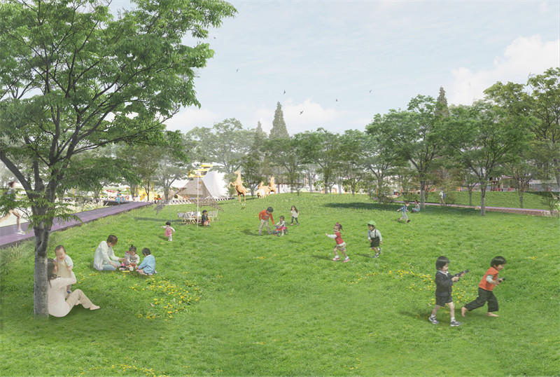 设计将儿童公园作为连接孩子与自然的媒介围绕“动物森友会”,提出“生态优先、关注儿童、塑造特色”三大策略:基于低碳理念,营造兼具科普与生态的自然友好公园;针对不同年龄段的空间需求,营造全龄儿童活动空间;通过亲切的动物形象,创建特色化的主题活动场景。