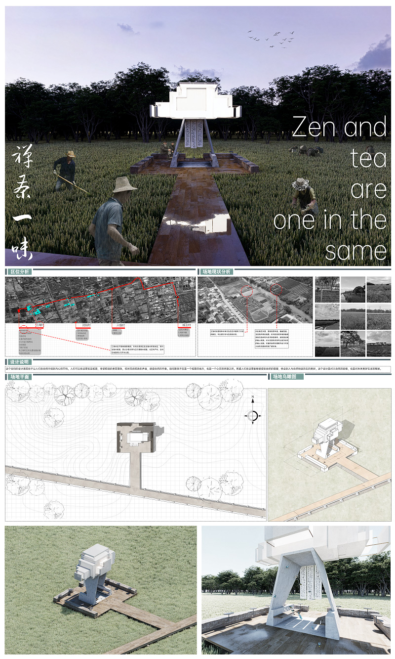 禅茶一味,这个空间的设计意图在于让人们在自然中找到内心的平和。人们可以在这里驻足观景,享受稻田的美丽景色,倾听风吹稻浪的声音,感受自然的节奏。