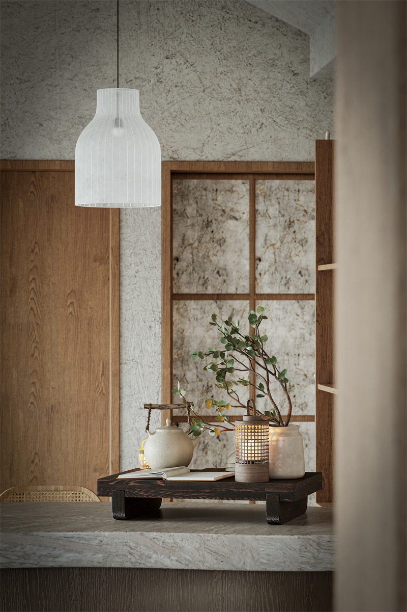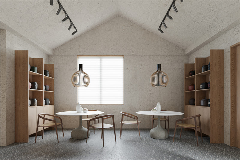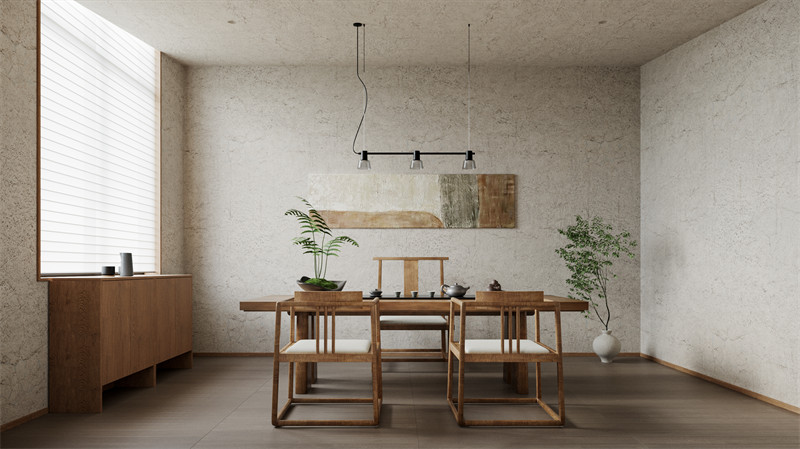 自然与朴素:侘寂风茶艺空间以自然和朴素为核心,强调回归自然,反对过度装饰和奢华。通过运用自然材料、质朴的色彩和简洁的线条,营造出一种宁静、和谐的氛围。