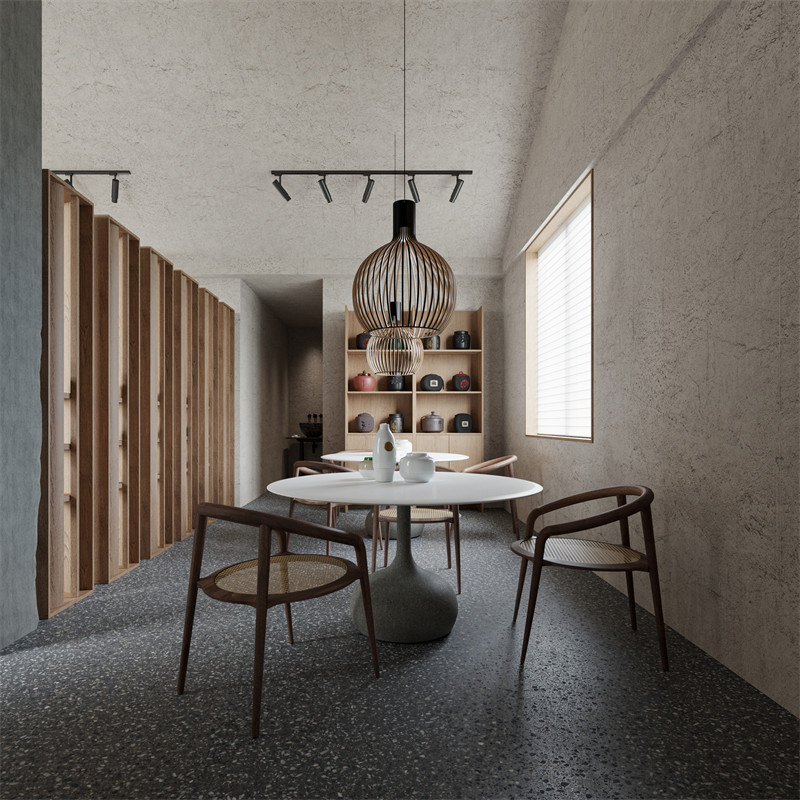 多功能融合:侘寂风茶艺空间不仅满足品茗的需求,还融合了休憩、阅读等多种功能。这种多功能的融合使得空间更加实用且富有层次感。