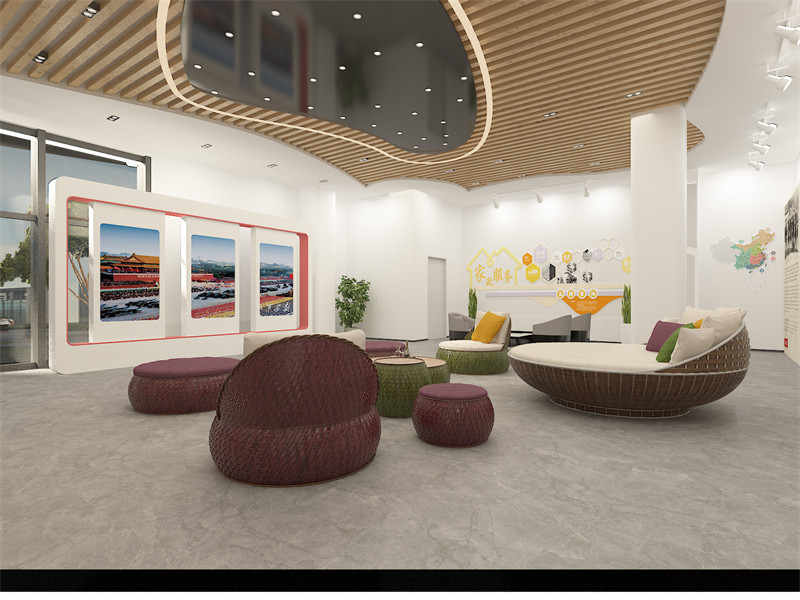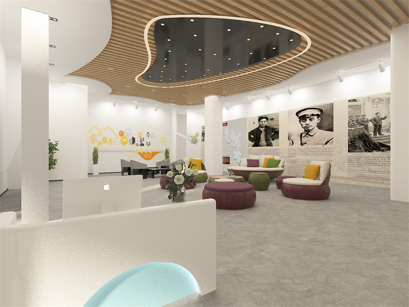 色彩:整体色调以淡雅、自然为主。室内墙面采用米白色、浅黄色等暖色调,搭配木质家具的深棕色,营造温馨舒适的氛围。公共区域可适当点缀鲜艳的色彩,如在文化活动区的舞台背景或装饰元素上使用红色、蓝色等,增加活力与视觉冲击力。