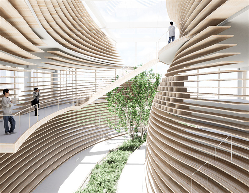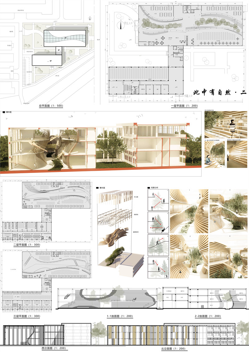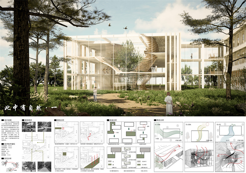 总的来说,本设计通过引入自然元素、注重空间功能与灵活性的结合,以及细致入微的设计,力求为使用者提供一个既实用又富有美感的学习空间。它不仅满足了现代图书馆对功能和舒适性的要求,还通过创新的设计理念,为师生创造了一个能够激发思维、享受知识的理想环境。设计希望通过这种自然与建筑的和谐融合,提升用户的整体感官体验,让图书馆成为一个真正的文化和精神栖息地,成为学术交流、思维碰撞和灵感激发的源泉。