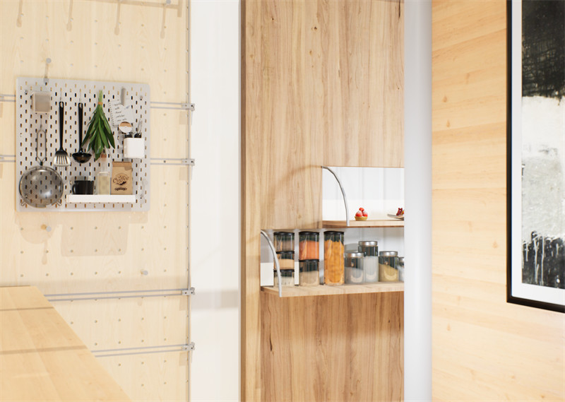 在设计此次微空间改造作品过程中,前期根据人体工程学以及人类日常肢体动作尺度作为模块化设计的理论基础,以人体工学模数为基础对空间进行升级与创新。