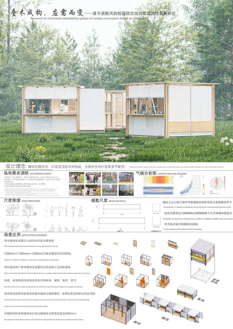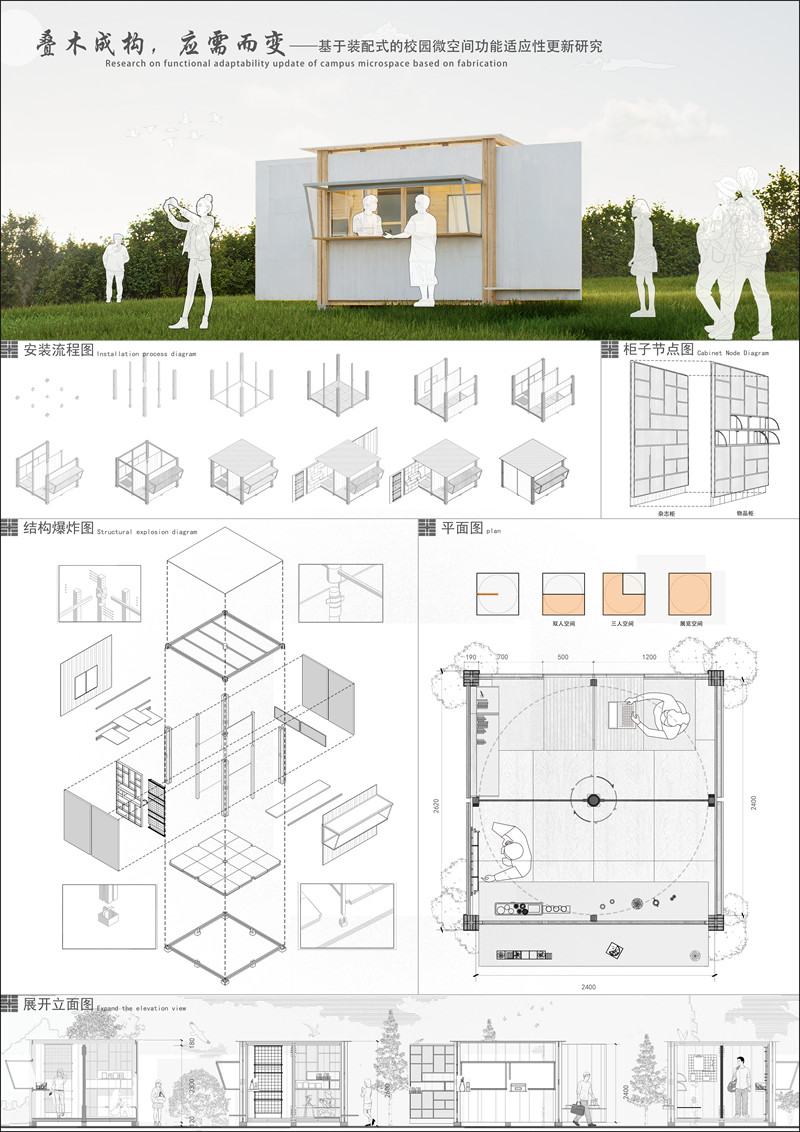 2.作品名:叠木成构,应需而变 – 基于装配式的校园微空间功能适应性更新研究