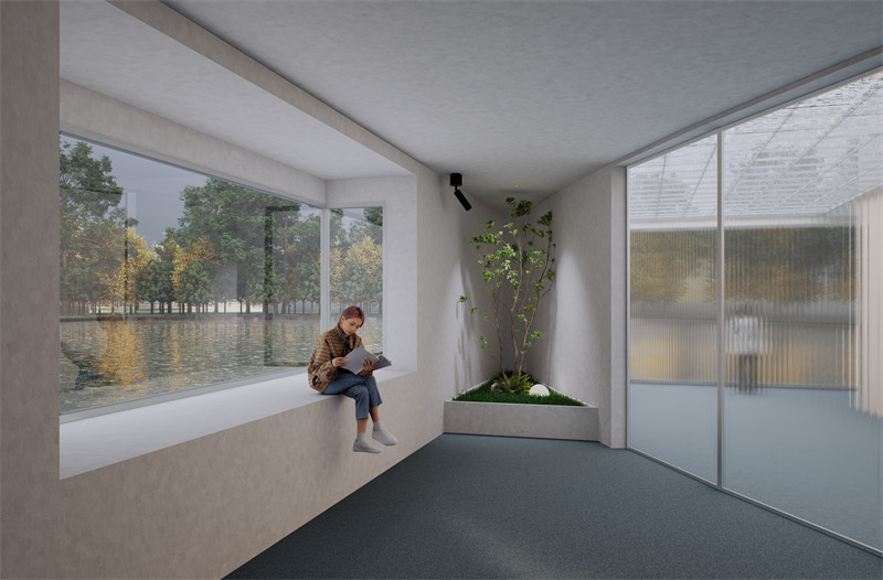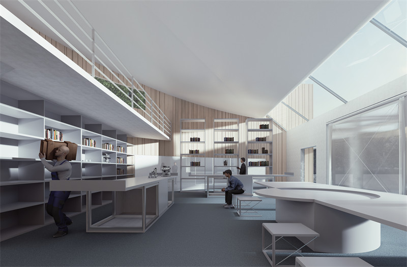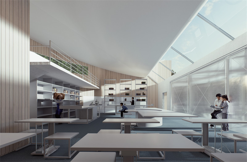 为了促进社交互动和信息流动,空间内特意设计了座位区和开放式讨论区,鼓励人与人之间的交流与合作。场地的一部分可根据需求改造为展览空间,用于展示艺术作品、学术成果或学生创意作品,既能提高场地的使用效率,也能为校园文化的传播提供新的平台。