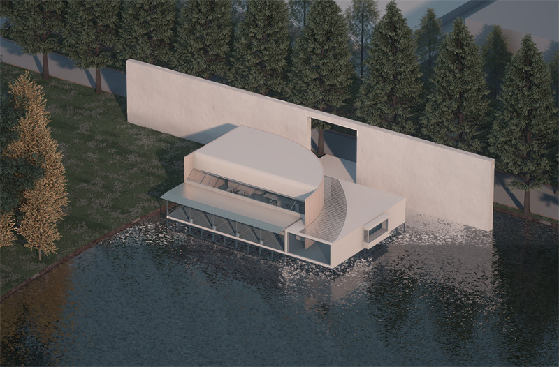考虑到沿海地区日益严峻的海平面上升问题,本设计在建筑的选址与结构设计中加入了对这一挑战的应对措施。在建筑外围,设计了防水层和可调节的排水系统,确保在暴雨或海水上涨时,建筑内部不会受到水浸害。同时,桁架结构设计也具有一定的可变性,可以随着气候变化或环境条件的不同进行调节。设有集雨系统,将降水收集并通过管道系统引导至建筑周围的绿地,实现雨水的自然回收与利用。对海平面上升带来的沿海建筑问题提供了思考。