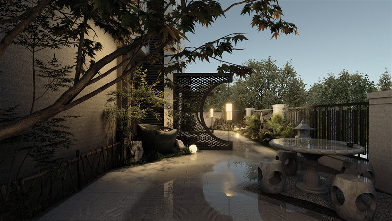 植物选择兼顾四季景致与中式寓意。春日,粉白相间的樱花、海棠竞相盛放,如云似霞,满院芬芳;夏日,荷花于水榭旁的水池中亭亭玉立,清香四溢,消解暑气;秋日,金黄的银杏、火红的鸡爪槭,为庭院披上绚丽彩衣;冬日,苍劲的腊梅傲雪凌霜,暗香浮动。此外,庭院中还点缀着象征长寿的松柏、寓意高洁的竹子等传统中式植物,契合国人的文化审美。