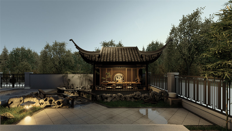 《风徕水榭・雨过山亭》新中式庭院设计,不仅是景观的营造,更是生活意境的雕琢。它将传统中式园林美学与现代别墅生活无缝衔接,让居住者足不出户即可领略四季更迭、感受风花雪月;于忙碌日常中觅得宁静诗意,承载国人骨子里对中式生活的眷恋与期许,为现代庭院设计提供了极具参考价值的范例,诠释出新时代下中式庭院文化的独特魅力与蓬勃生命力。
