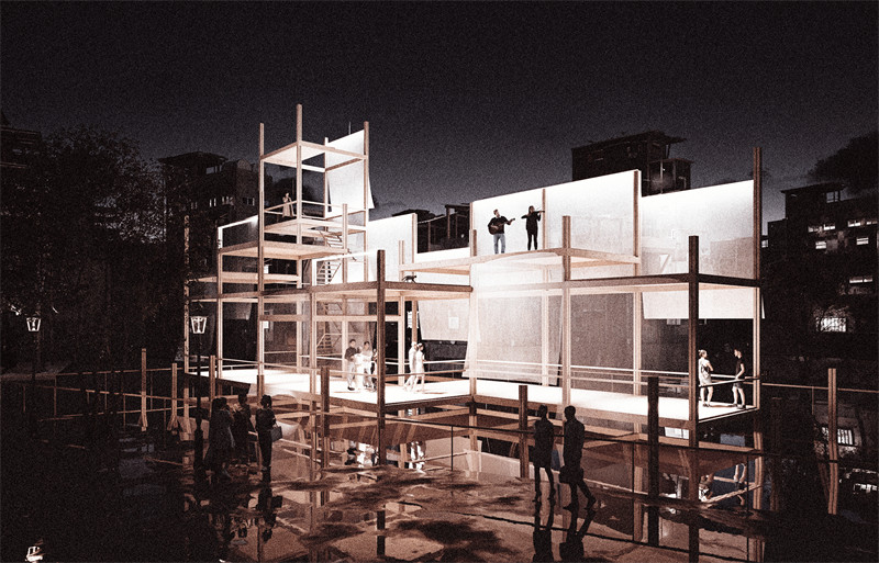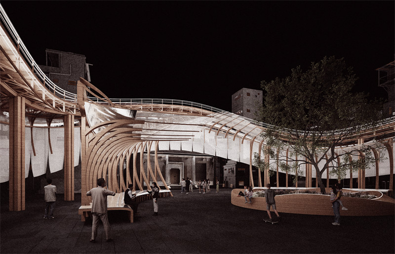 最后这个步道系统将村中少有的几个公共空间联系了起来,方便居民前往活动和交流,在这几个公共空间,我根据他们周边的环境和使用的人群搭建了新的建筑和小品,如市集,博物馆,舞台和广场,旨在赋予他们新的功能和活力。