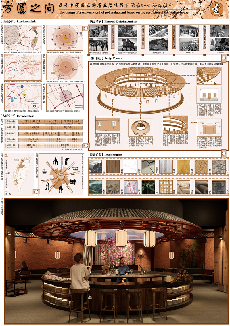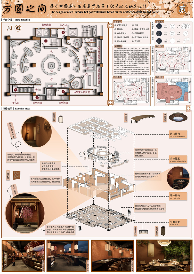 2.作品名:《方圆之间——基于中国客家围屋美学的火锅店设计》。