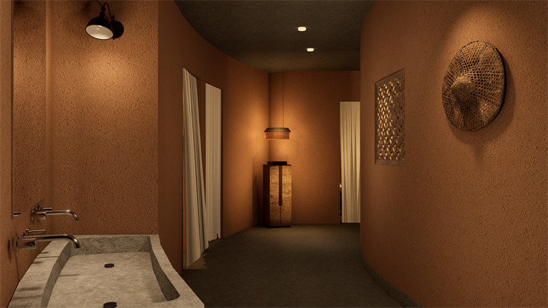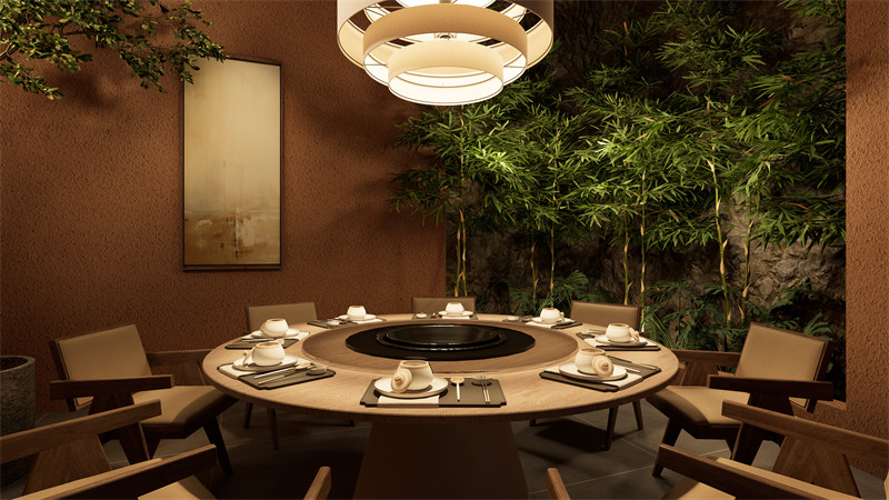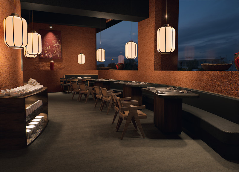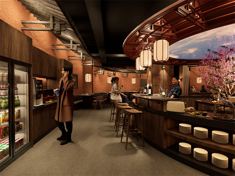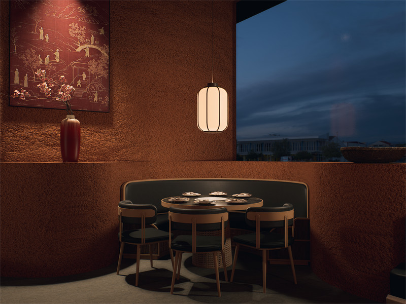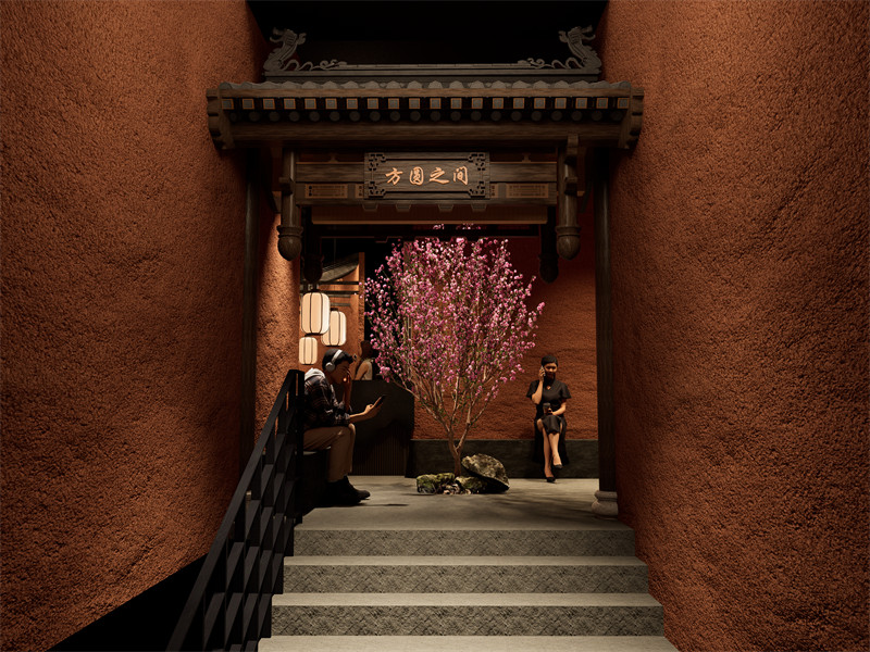 3.设计理念及思路:本案创新品牌为《方圆之间》,探索客家传统文化与现代自助火锅餐饮商业空间的融合。方案传承和创新客家文化,为商业空间增添文化底蕴和独特视觉体验,为台湾同胞打造体验我国文化魅力的场所,增强民族认同感。局部以中央小土楼为设计核心,将其打造成自助取餐台和操作台,它是顾客与商家互动的重要场所,能让人有从上帝视角鸟瞰土楼的奇妙体验。整体上,人行视角可体验不同部位的土楼。中央小土楼对应祖堂,象征凝聚和传承;四周墙体如同土楼外墙,带来安全感和稳定感;外围部分类似自然风光,让顾客用餐体验更丰富。