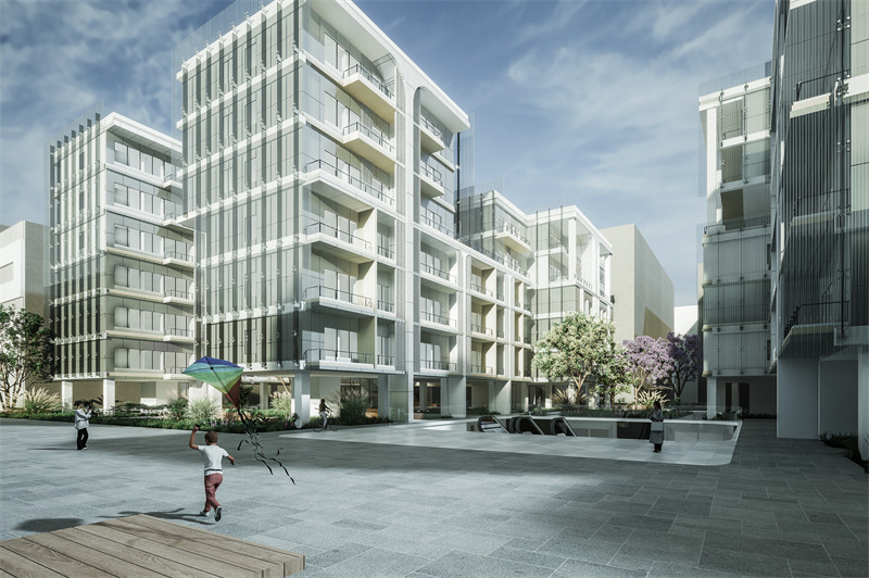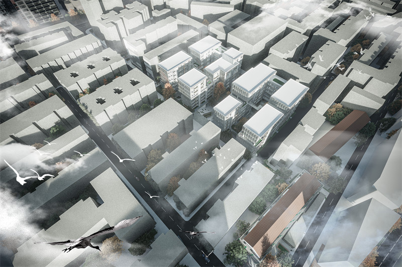 设计亮点:在保持城市肌理的基础上,对工人村已有社区和住宅进行环境改造和更新,我们提出社区公园的概念,通过三条横向轴线连接场地与周边公园,住宅部分公共公园与私密公园结合,提升住户的生活品质,从而实现空间活化与区域振兴的目的。