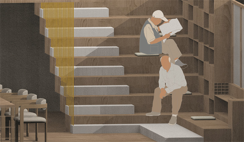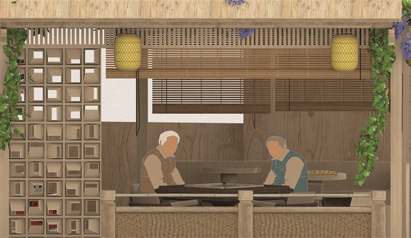 我们通过拆除面向院落的界面,打破室内外边界,塑造与时间为友与自然为友的空间载体。依据节气时令的变化和家具模块的重组,形成老年人向往的共享舞台。