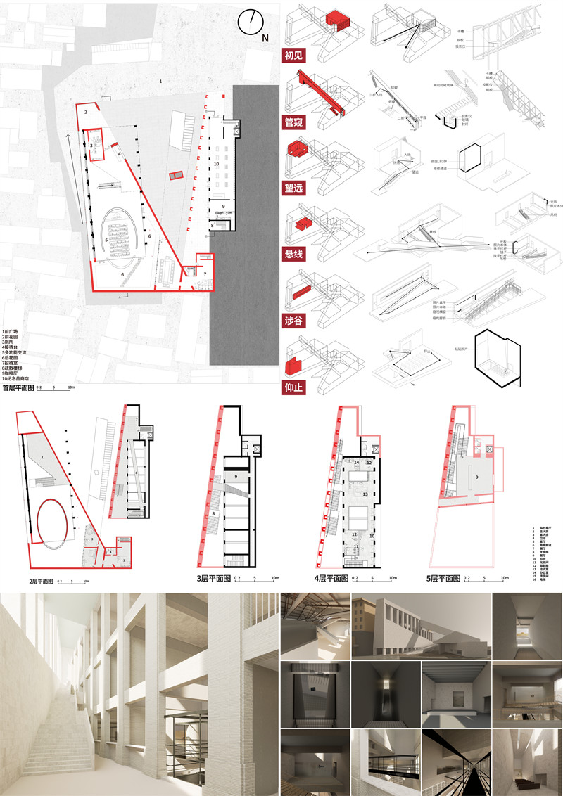 方案简单概括下来就是在“把历史建筑作为地形”的语境下,流线如何给人一种探索以及随遇而安的感觉。