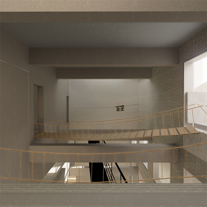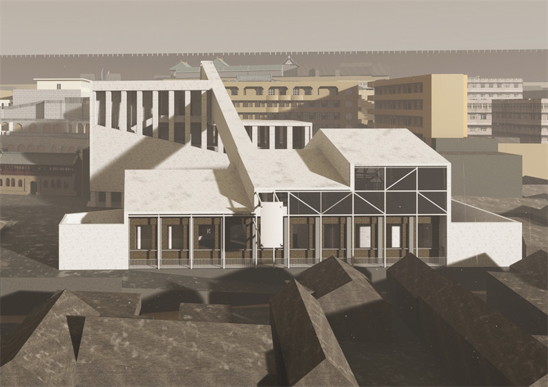 思想首先来自建筑所处的环境,场地在一座拥有六百年历史的古城榆林,曾经是一个工业学校,现在早已废弃。