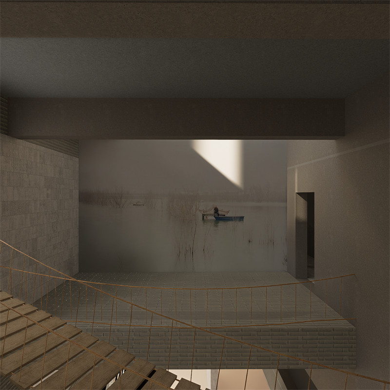 出于对这么一个关键物品以及场地的尊重,我试图把桥与场地联合起来。在探索的过程中,我思考 是否能把历史建筑作为一种地形,在整个地形里放置十张照片。那么我所要做的就是在地形中勾勒出流线,给人一种探索以及随遇而安的感觉。