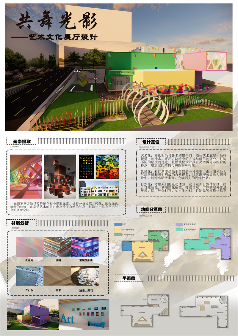 设计理念:本项目旨在打造一个融合艺术、功能性的展厅,通过空间设计激发人们的想象力与情感共鸣。在设计中融入绿色理念,选用环保材料,减少对环境的影响。