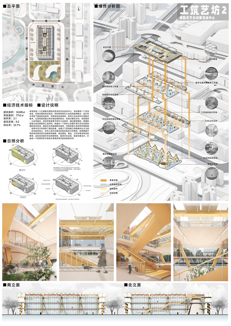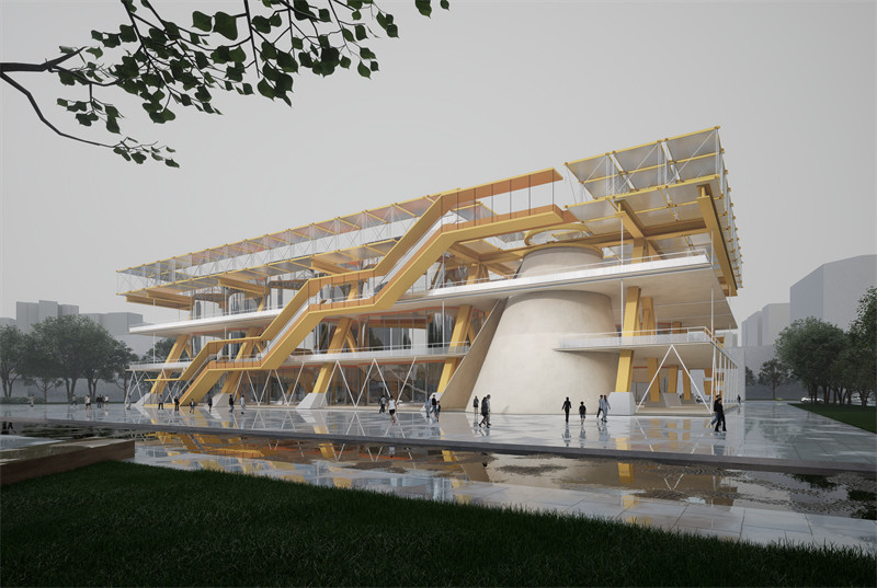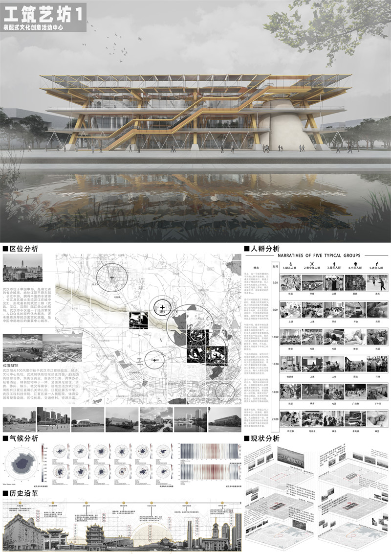 建造方式采取装配式建筑,考虑到施工效率和环境影响,这种方法不仅加快了建设进度,也减少了现场施工的噪音和尘土污染。在功能布局上,本中心设计注重空间的开放性与可塑性,能够根据不同的活动需求进行快速布局调整,满足展览、演出、工作坊等多种功能需求。旨在成为城市文化的新地标,促进文化交流,激发创意活力。打造成一个既具有艺术美感又兼具实用功能的独特空间。及思路: