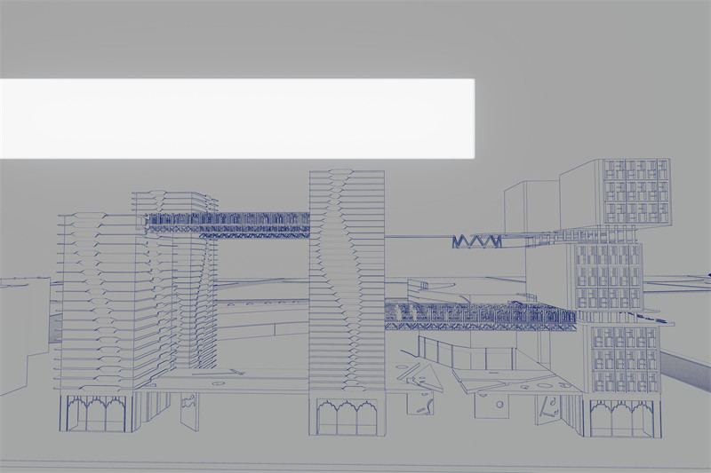 居民楼改造方面,保留原场地的三栋居民楼,并对其表面施加曲线扭转的建筑表皮,这样的处理既赋予建筑独特外观,又增添了现代感与艺术气息。在高层住宅楼之间搭建高空通道桥梁以及活动平台,有效提高了居民的居住体验,同时强化了城市空间那种拼贴错落的感觉,使整个居住区域更具活力与互动性。对于第三栋建筑,采用偏移体块的形式,巧妙地将楼层之间进行架空处理,由此营造出活动空间以及绿色植被空间,丰富了建筑的功能性与生态性。