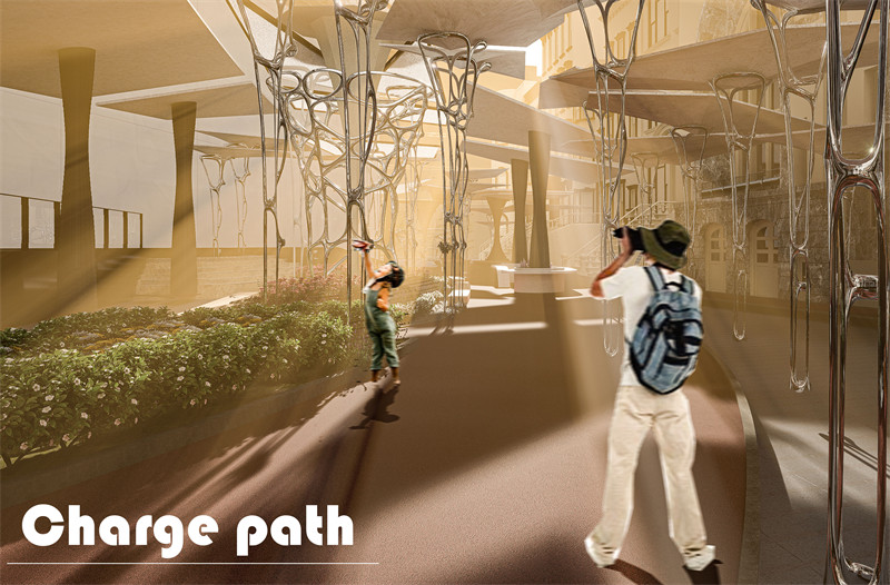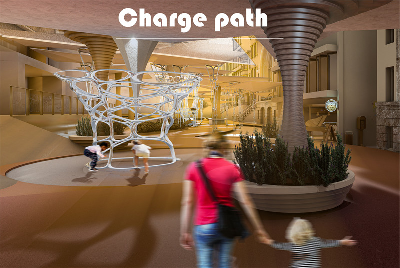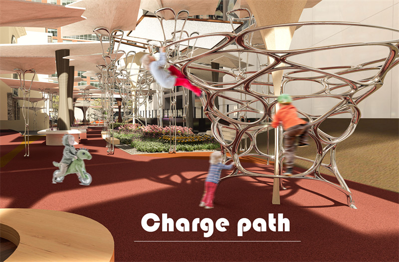设施设计:结合黏菌算法优化路径生成,为儿童设计攀爬设施与挑战性空间。节点设计注重动静结合,提供围坐、休憩和互动区域。