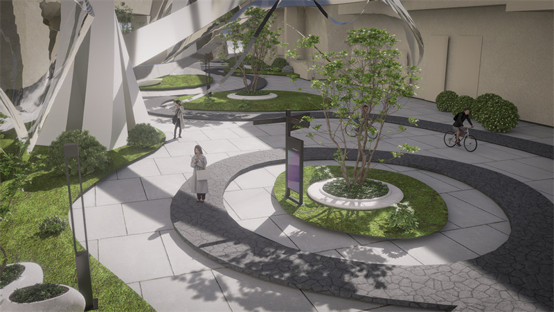 3.设计理念及思路:近年来,针对城市局部更新改造的计划与构想越来越丰富,“口袋公园”的名字也越来越频繁的出现在大众的视野中。但根据我们的走访调查,大部分城市口袋公园的设计只是单单更新了微景观,地标与绿化等。这让我们觉得有些许乏味与重复。我们是否可以因地制宜,然口袋公园的设计不止步于绿化的更新,将更多有意思的元素引入到公园中,这是我们着手设计的初衷。