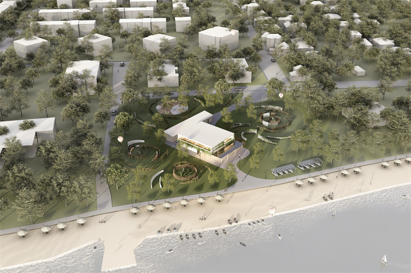 服务设施区::包括储存游船的区域以及更衣功能的设施,充分满足游客的休闲需求,为户外的水上活动提供便利支持。