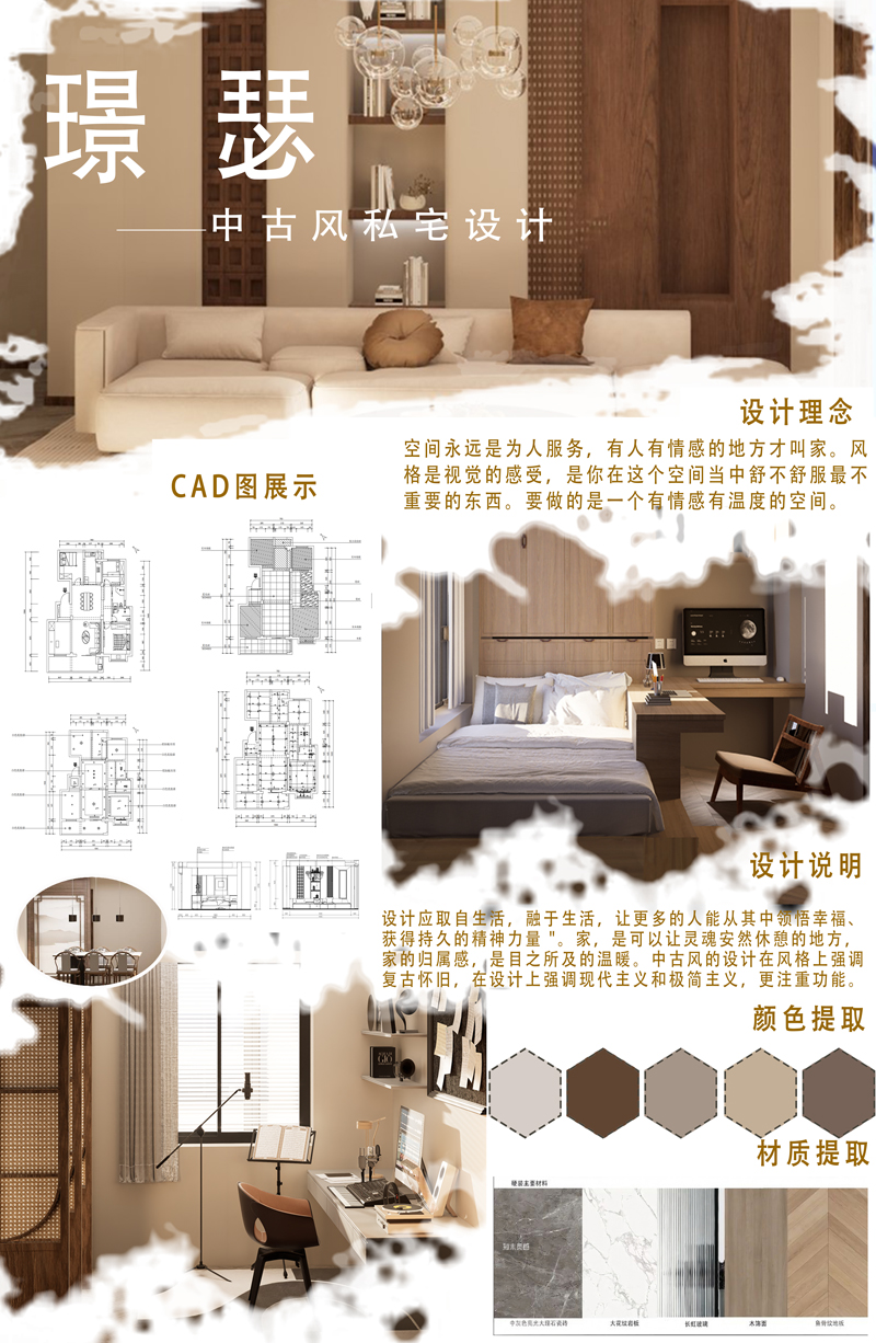 3.设计理念及思路:设计理念是空间永远是为人服务,有人有情感的地方才叫家,风格是视觉的感受,是你在这个空间中舒不舒服最为重要的东西,璟瑟打造的是一个有情感有温度的空间。以中古风的设计为主,在风格上强调复古怀旧,在设计上强调现代主义和极简主义,更注重功能性。