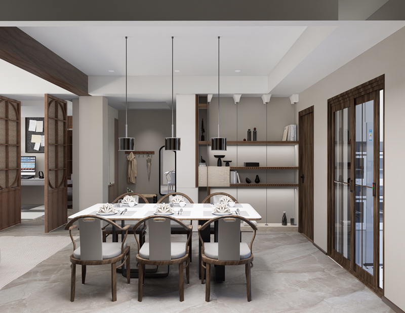 与此同时,客餐厅的竖厅设计更是锦上添花。它赋予了空间一种强烈的纵深感,让人仿佛置身于一个深远而开阔的世界之中。从入口到深处,每一个细节都经过精心考量,使得整个空间既流畅又富有层次。竖厅的布局不仅提升了空间的利用效率,更在视觉上带来了一种延伸和扩展的感觉,让整个客餐厅显得更加宽敞明亮,为居住者带来更加舒适和愉悦的居住体验。