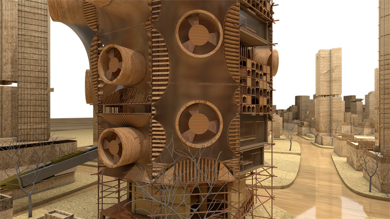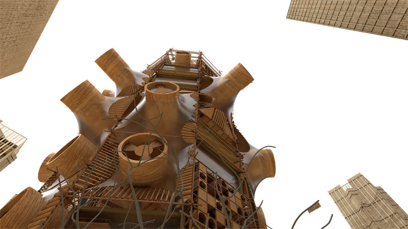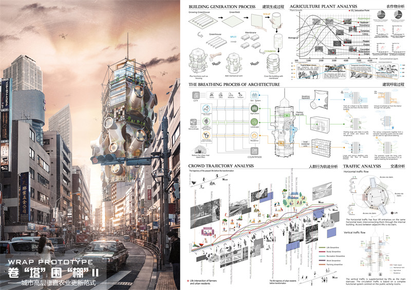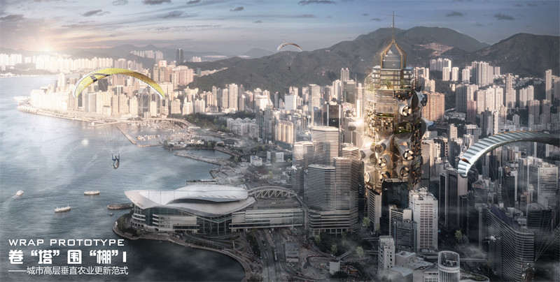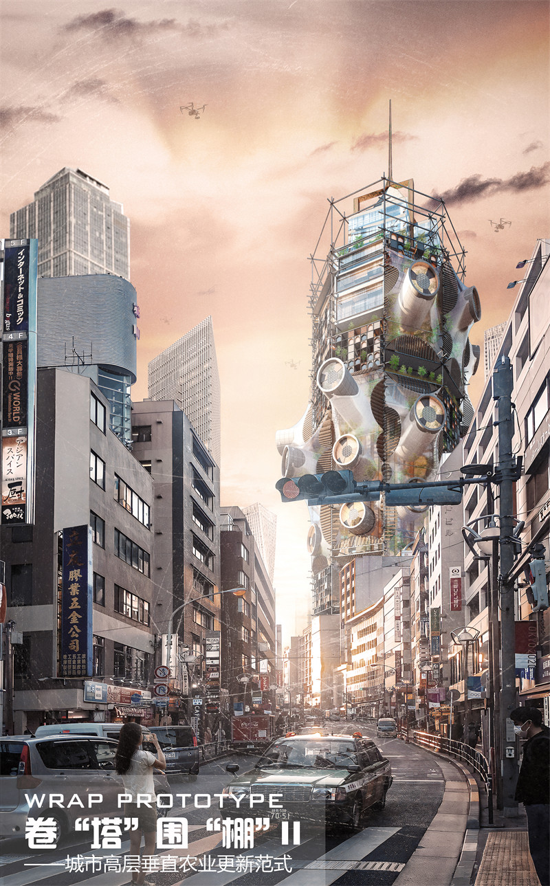 2.作品名:卷“塔”围“棚” – 城市未来垂直农业范式