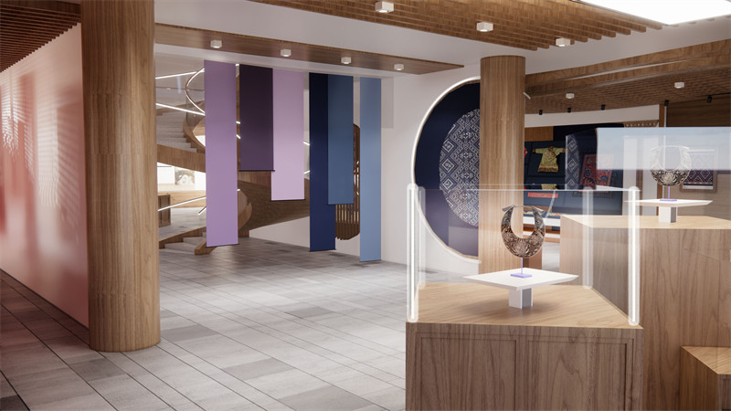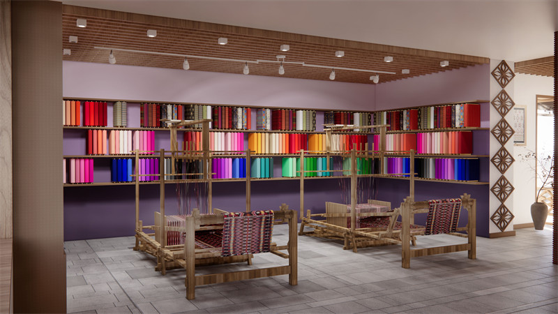 本方案是由侗族文化侗锦元素特点并结合现代艺术表现手法和现代建筑建设要求,构建出侗情朴实柔美与现代创新发展所融合出的侗锦非物质文化展馆,我们希望让更多民族看到侗族人们一代代传承的手工手艺,能共同守护这份文化瑰宝,弘扬且传承。我们将以现代与传统侗族文化的碰撞,呈现出形式简单但富有独特地域风情的展示空间,我们经过实地调研集资料从侗锦和侗族建筑中提取不同元素去表现这个空间。