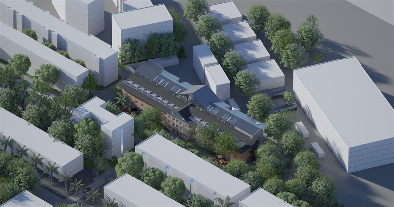 同时建筑的主立面由于长时间的私搭乱建,管线外露,影响立面形象,前侧的绿化空间也被非机动车停车位占用,因此设计中将建筑前的自建构筑物拆除,将前侧景观与一层的公共休闲空间一同考虑,将外部的景观与室内衔接,增加室内的空间品质。