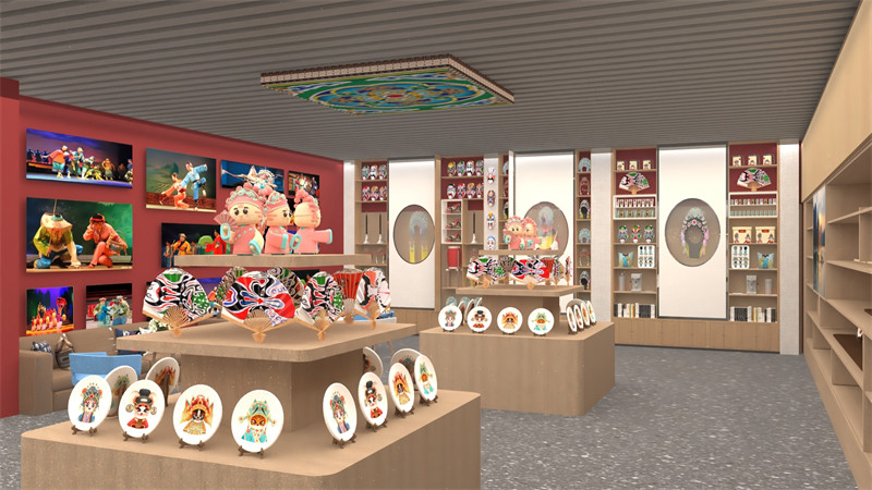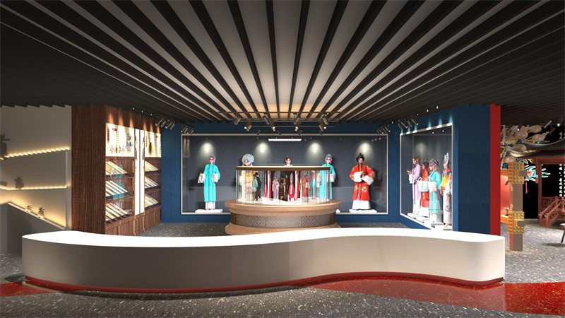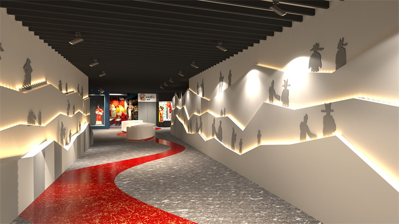 门头设计:打破传统非遗展厅中规中矩、有棱有角的直线设计,采用柔和的弧形曲线重塑空间的律动感。曲线的门头设计,艺术感满满,也展现了DPI独特的设计审美。内部空间:空间布局是展厅设计的核心之一。开放式的空间布局,可以自由穿梭体验,沉浸式拍照打开更出片。展厅内部有宽敞的售卖区、展示区、展示廊和沙发等等;合理的动线设计可以让参观者更加流畅地参观整个展厅,同时也增加了参观者的参与度。通过空间布局让每个小空间来展示晋剧文化展览,展示廊的设计以白色元素为主,墙上是由晋剧的迷你小人物和山丘式灯带构成,像一座座小山丘,营造出一种浓厚的晋剧文化氛围。总的来说,非遗文化展厅设计概念要体现传统文化的传承与现代审美的结合,通过传统元素、空间布局、色彩搭配、灯光效果和空间氛围等方面的营造,为观众呈现一场具有深厚文化内涵的展览体验。