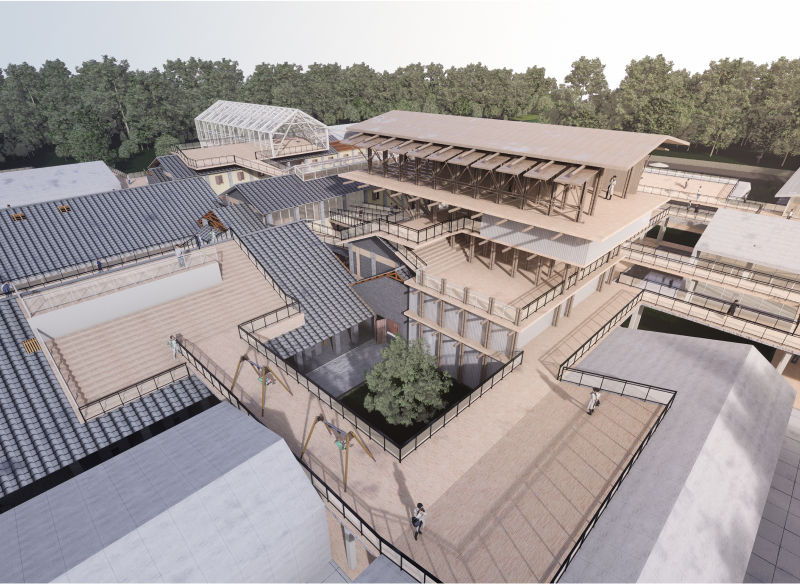 在功能,结构,庭院多重因素下,形成了多种趣味碰撞下的金城茧站。多样的空间,消隐的屋顶以及连续的栈道是对当地传统文化元素最好的回应,也维系着对于湖州丝绸桑蚕文化价值的体现。