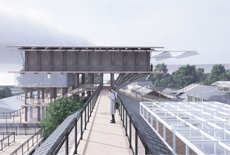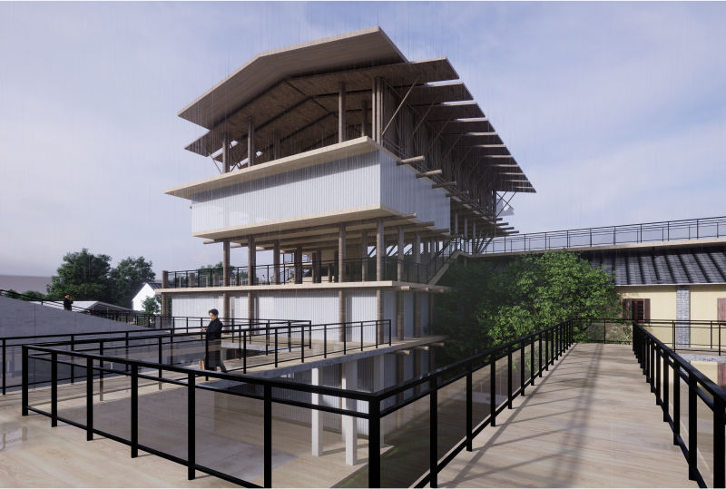 通过抽象拟合诸如:民居聚落形式,林间步道,梯田阶梯等地方传统空间,使人与所熟悉的环境建立一种新的认识与对话。使传统意向重新活化为建筑空间,在公共空间与娱乐空间的界面上建立连接,使古镇的原住民能够提供一个娱乐的活动场地,给小镇居民创造活动空间。