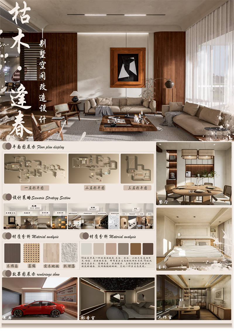 诧寂风源于日本的美学观念,崇尚自然、不完美、不对称和简约。它以“发现不完美中的美”为核心,常表现为对朴素材质、温润光感以及自然空间的推崇。对于别墅的室内设计,诧寂风格不仅关注美感,还关注居住体验的宁静与和谐。以下是诧寂风别墅设计的详细说明。