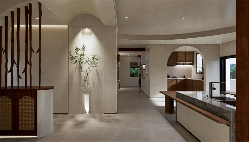 诧寂风别墅设计不仅仅是审美表达,更是生活体验。设计不仅关注视觉效果,还要重视触觉、嗅觉等感官体验。例如,在家具上触感温润的木质表面,在空气中弥漫着自然的清香,通过设计引导居住者慢下来,体验空间的每一个细节,找到内心的宁静。这样的设计关注内心的宁静与平衡,帮助人们找到一种放松的生活方式。