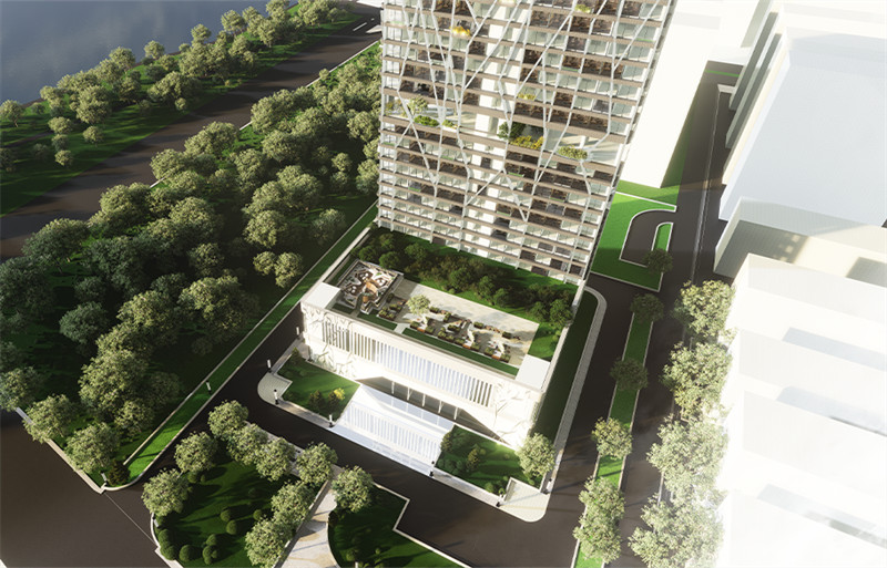 设计亮点:在立面设计上抽象树木枝干的竖向生长姿态,与空中花园一起打造枯木逢春的意向表达。