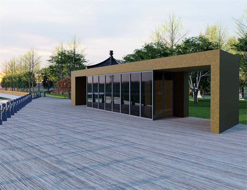 (4)亲水平台:打造玻璃房,以便于老人满足日常对于阳光要求,且湖边空气与风景好,提升幸福感