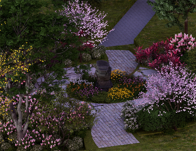 (3)疗愈花园区: 花园里的植物基本以绿色为主,点缀一些白色,紫红色,蓝紫色。通过视觉、听觉、嗅觉和触觉的多重刺激,使人们在大自然中获得全方位的感官体验,从而达到身心的放松与疗愈效果。对于老年人或认知障碍患者,记忆花园更是意义非凡。