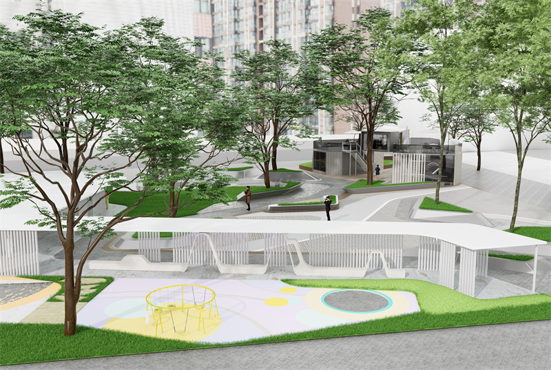 公园的设计充分考虑到不同人群的使用需求,将功能区域巧妙地融入简约的形式之中。沿着折线形的空间布局,设置了多样化的功能分区,包括休闲漫步区、健身活动区、儿童游乐区以及静谧的休憩区等。休闲漫步区以连续的折线形步道连接公园各个节点,步道两侧配置简洁而富有层次的植物景观,让人们在漫步过程中既能享受自然之美,又能感受到折线线条带来的动态变化。健身活动区则根据不同的运动需求,布置了折线形的健身器械场地与开阔的活动草坪,既满足了人们锻炼身体的需求,又在空间形式上与整体风格相协调。儿童游乐区设计了富有创意的折线形游乐设施,如滑梯、攀爬架等,激发儿童的探索欲望与想象力。